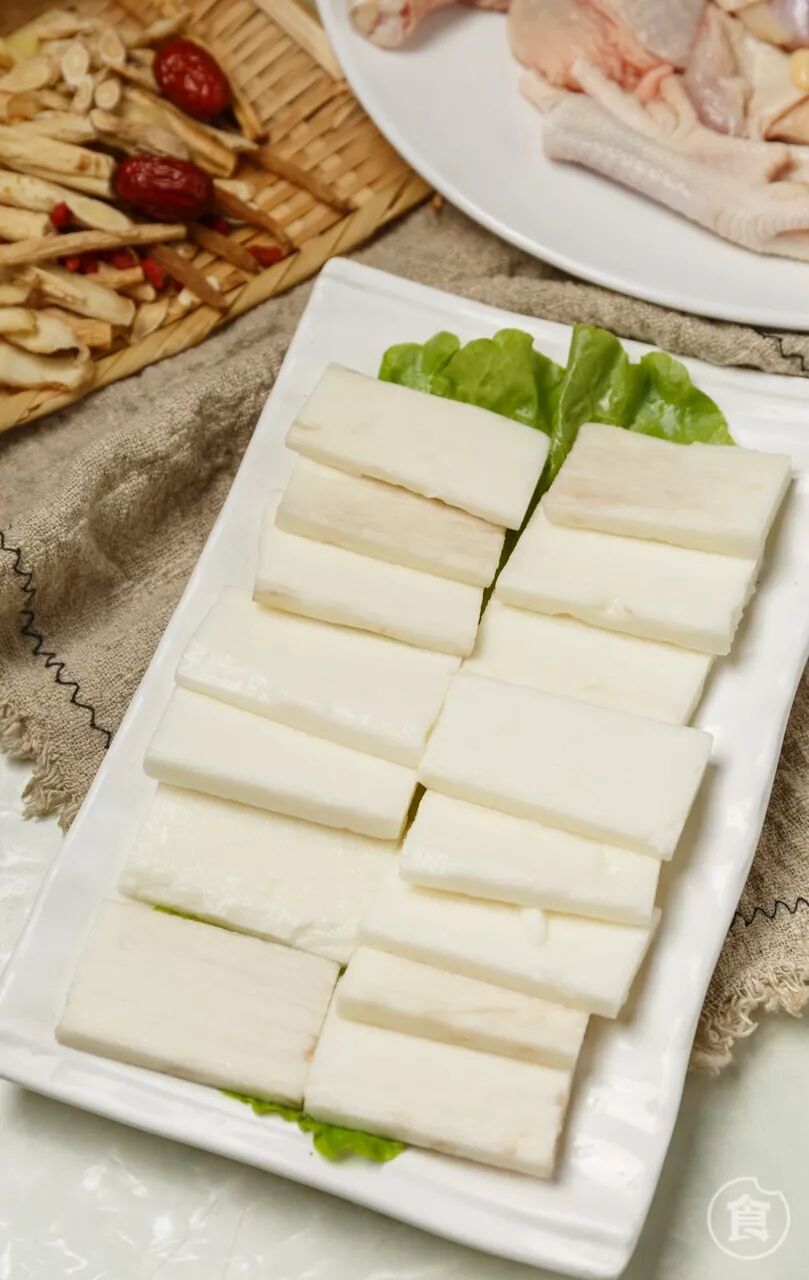 吃了鸡肉可以再来点蔬菜,淮山含有大量黏蛋白,对人体保健也有特殊作用,食补价值很高,是搭配药膳火锅的不二之选。