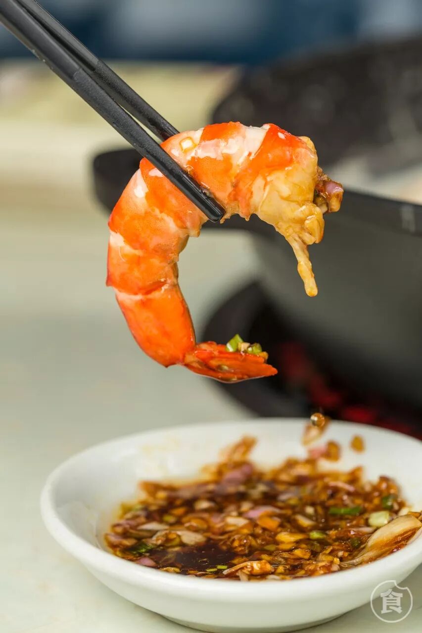 店里特地提供了特调的红葱头酱油蘸料,加了浓香的芝麻油,虾肉的鲜甜味都被激发出来了。