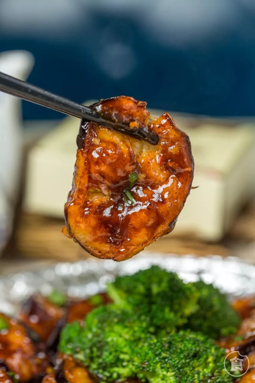 茄盒中间夹着肉末,在铁板上煎得绵软。蚝油的加持更增添了茄盒的风味,超级下饭!