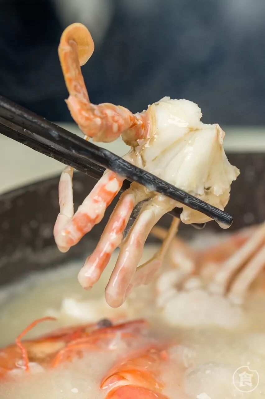 肉质紧实的红花蟹是毋米粥锅底的好搭档。爱吃海鲜的宝宝千万不能错过它。