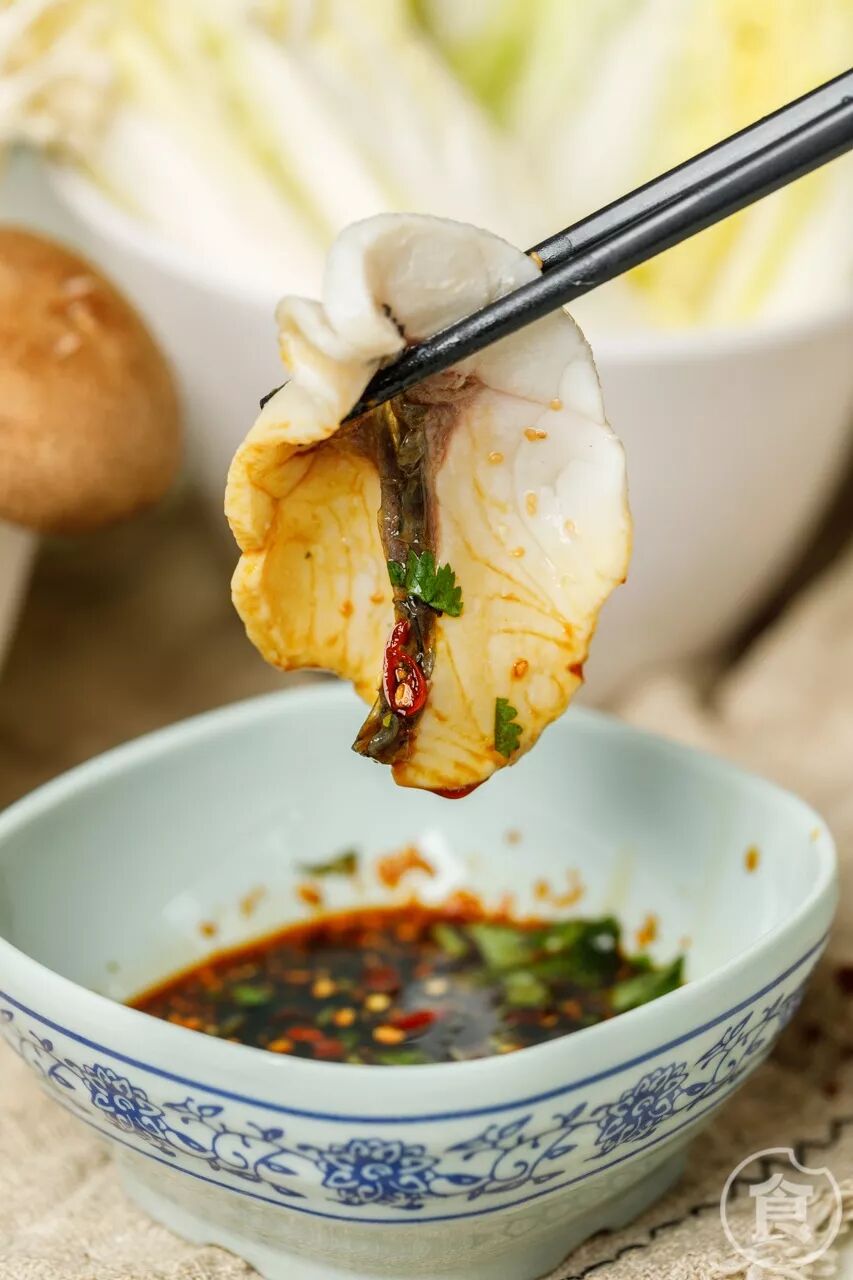 鲩鱼肉质偏脆,也没有泥腥味,蘸上酱料后很鲜美。将鱼肉和羊肉堆满一碗,大写的“鲜”,吃起来超满足。
