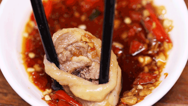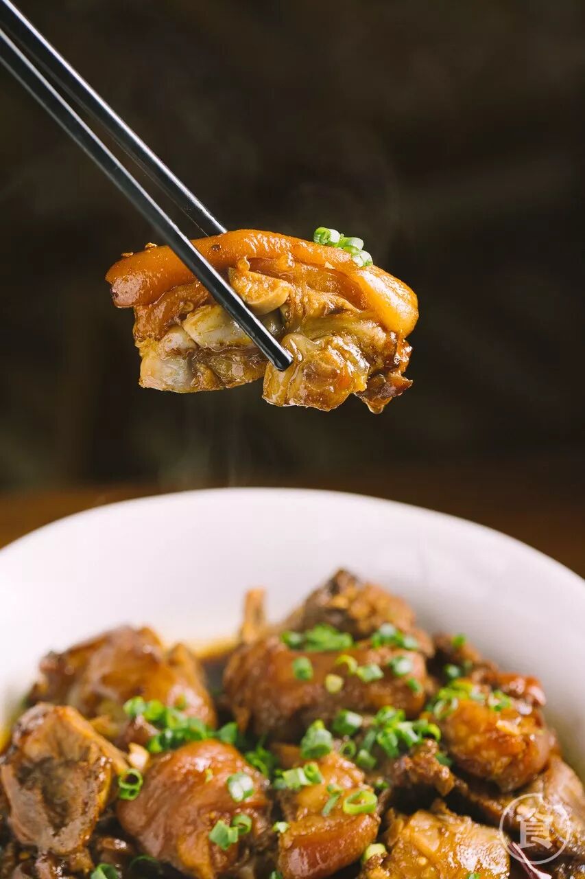 它因一口隐约的辣味让人爱不释手。小火慢炖后,鲜辣的酱香味和干辣椒的辣味都渗进了猪脚里。轻咬就能脱骨,满嘴胶原蛋白的粘稠。