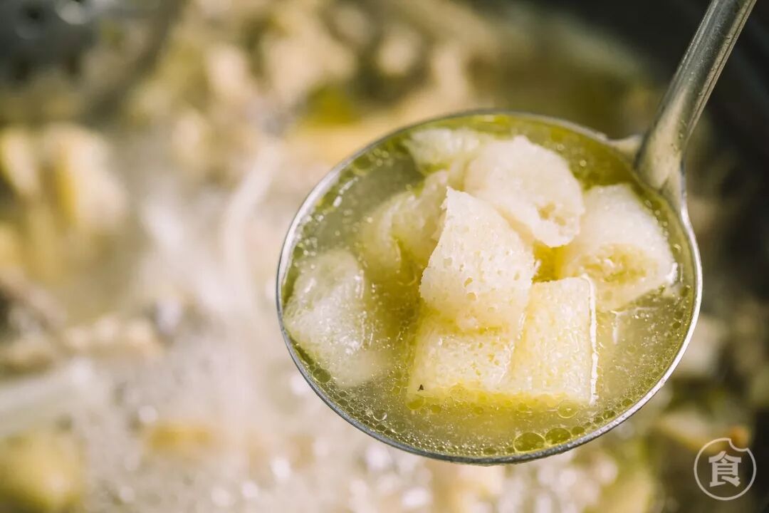 店里的竹笙鸡也很受欢迎。同样用椰皇做汤底,加入“八大山珍”之一的竹笙。吸饱汤汁,口感变得爽脆,一口咬下还会爆汁,是幸福的感觉!