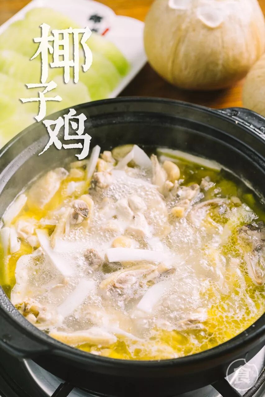 汤底变黄,是因为那结实的3斤半走地文昌鸡!大火煮5分钟,立马揭盖开吃,这时候的椰子鸡口感正好,鸡肉肉质白嫩,还有一层椰汁的香甜。