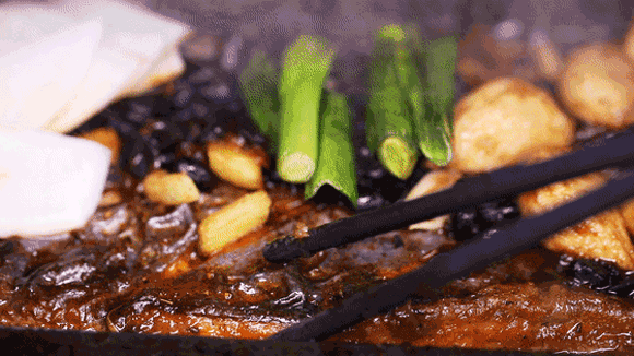 牛蛙要吃香辣的,烤鱼就吃酱香的,蒜蓉豆豉味刚刚好。烤炙过的鱼肉尽情吸收着豆豉的香味,在翻滚中从外酥里嫩变得鲜香软滑。