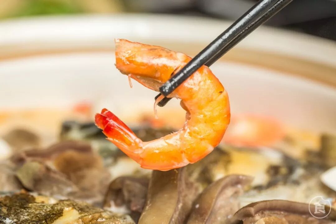 汤里还加入了白贝和鲜虾。白贝吸汤充分,吃起来特别鲜甜~虾肉口感鲜嫩。还有嫩滑爽口的鱼付。各种特别的滋味,让人上瘾,一块接一块。
