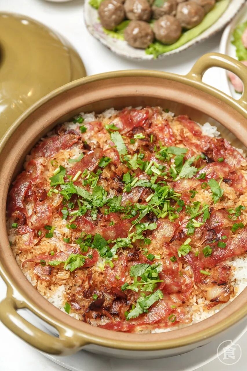 简单的煲仔饭非常考验厨师的基本功底。把腊肠切得薄厚均匀,加上腊肉及香米,淋上自制的酱汁,再用精准的火候,才能成就一锅美味的腊味饭。