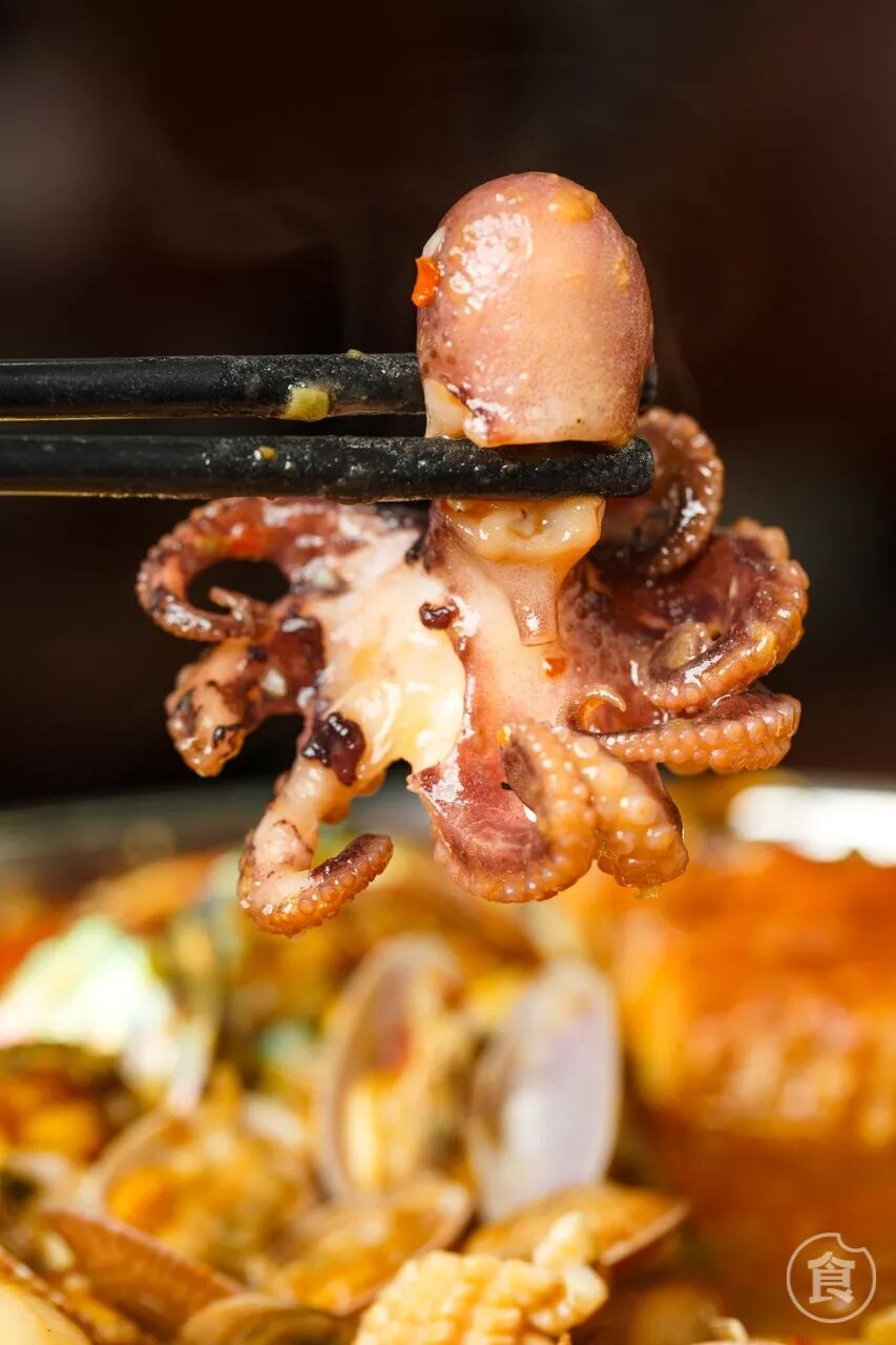 这些长相奇特的小生物,稍稍煮久也不怕影响口感。墨鱼仔小小一只,爽脆弹牙,一口一个,吃起来很方便。个头稍大的八爪鱼则多一分弹韧,嚼头更好些。鱿鱼切了花,既有味又有嚼劲。