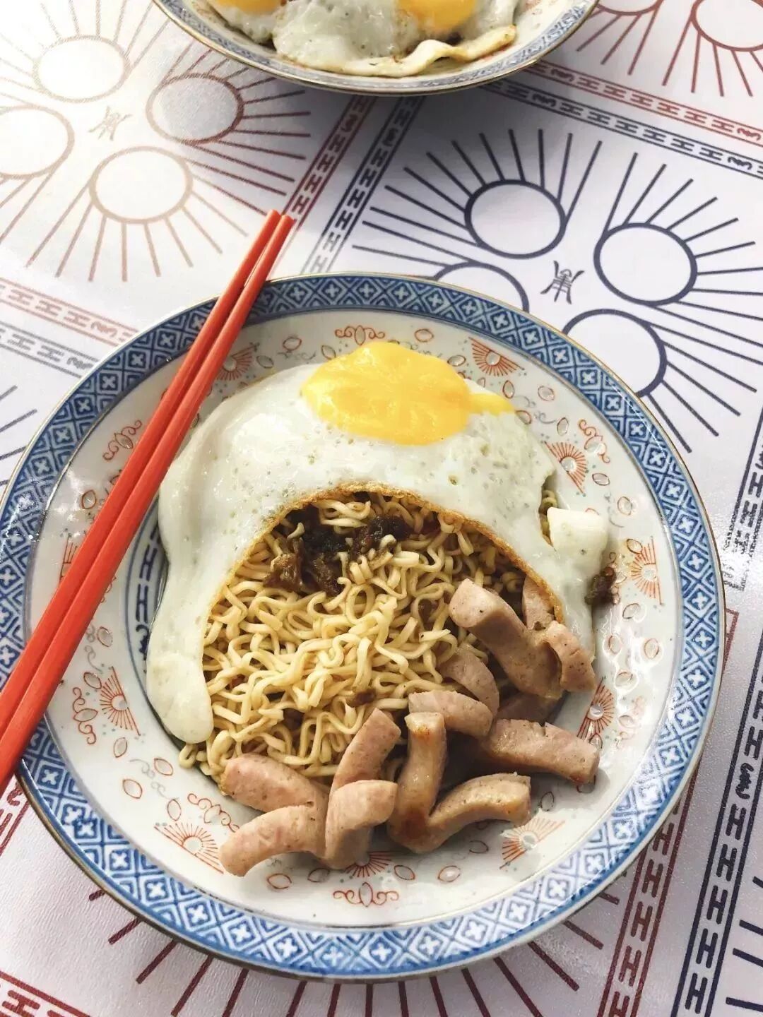 配上半熟的鸡蛋和桂花肠,不要太好吃