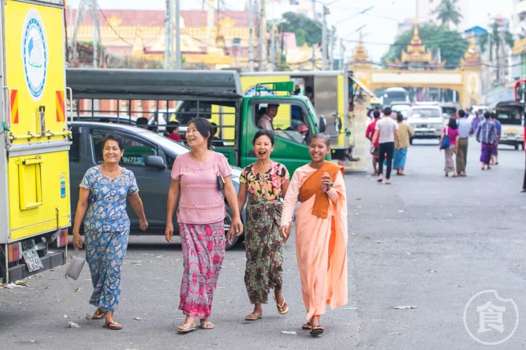 一路我都在认真的观察着这个城市,这里80%以上的人都信奉佛教,街头的僧侣也是仰光的一道独有风景线。纷杂的闹市、可以倒着坐的三轮车忙忙碌碌,这里的女人喜欢头顶食物,巨大的货物顶在头上,平衡能力个个赛过专业瑜伽教练。