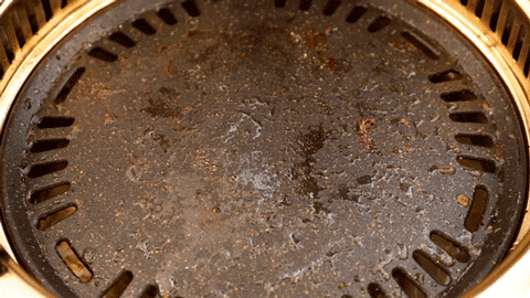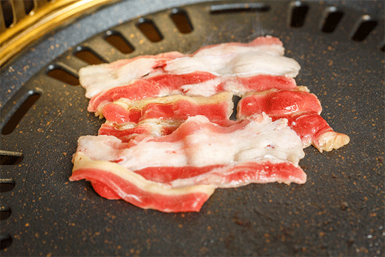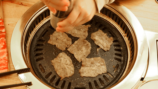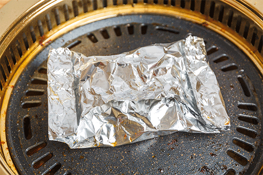 肥牛一起放入烤盘中,听见油花滋滋作响