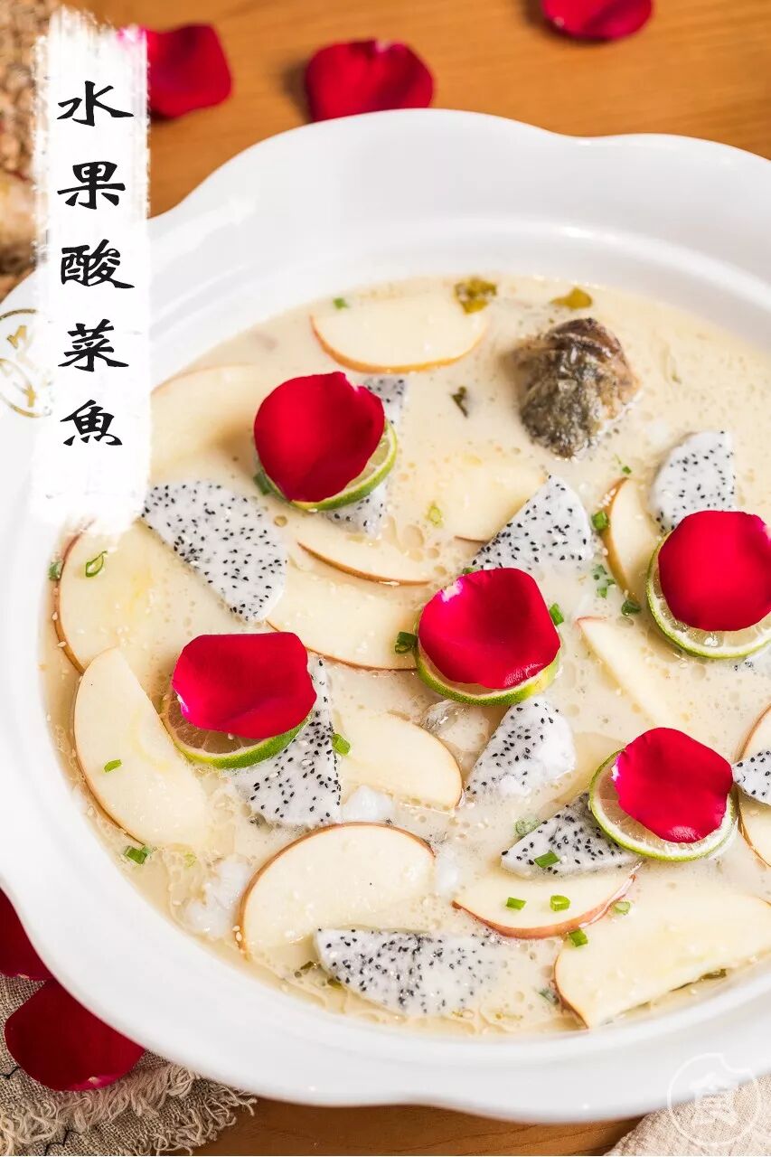 几片玫瑰花瓣更提升了水果酸菜鱼的颜值