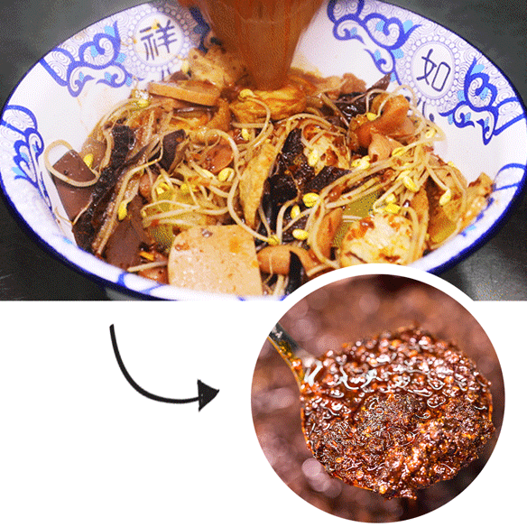 麻辣中携裹着香甜,后味翻滚着特制的酱香
