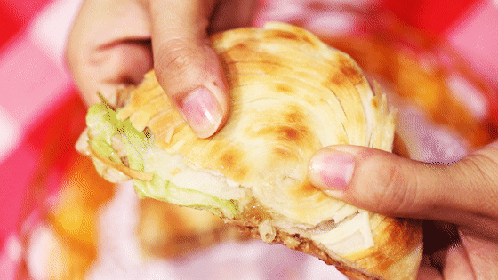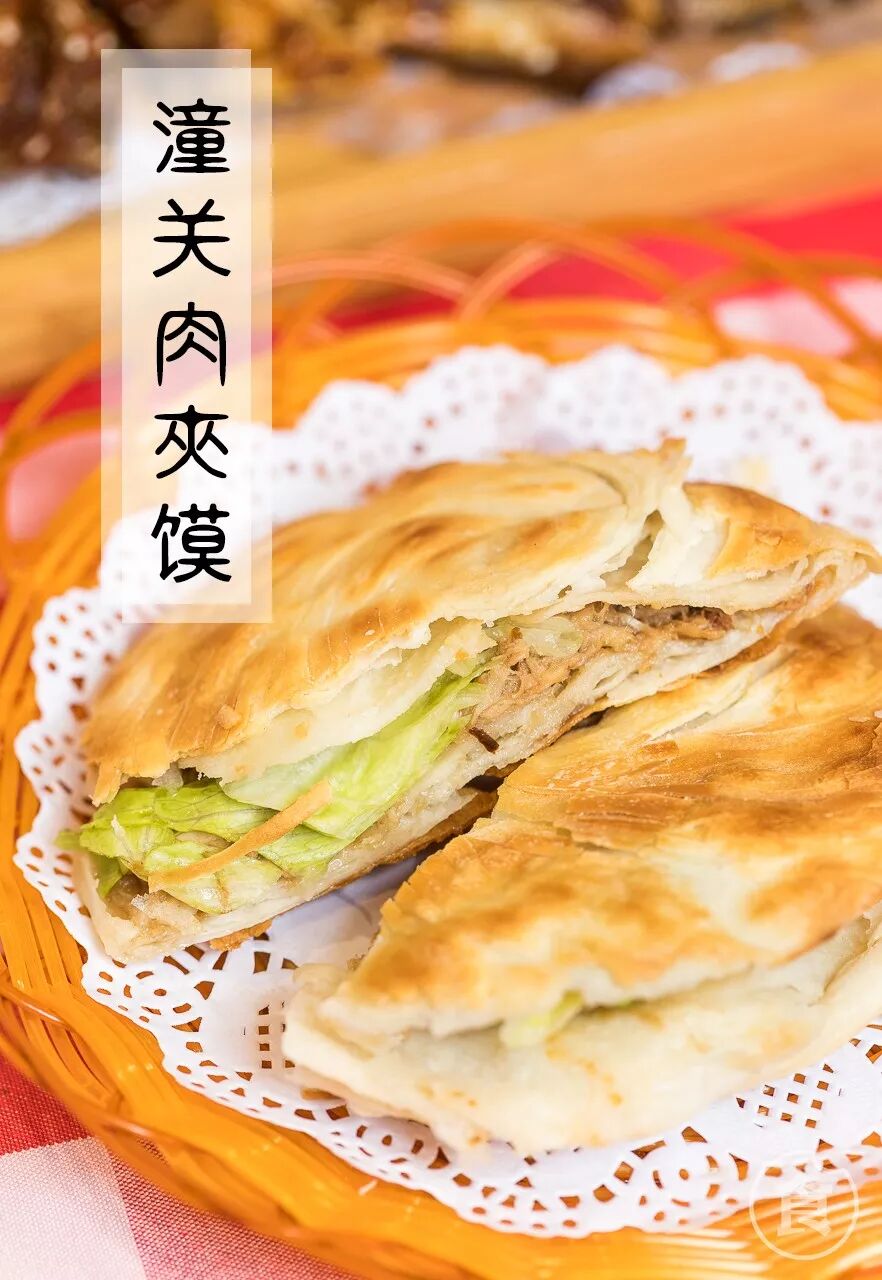 肉夹馍是大家熟知的一道陕西菜了。平日常吃的肉夹馍多是柔软的白吉馍,而潼关肉夹馍则是如酥饼一般的酥脆的口感。这种肉夹馍还讲究“热馍夹冷肉”,外热内冷,口感奇妙。