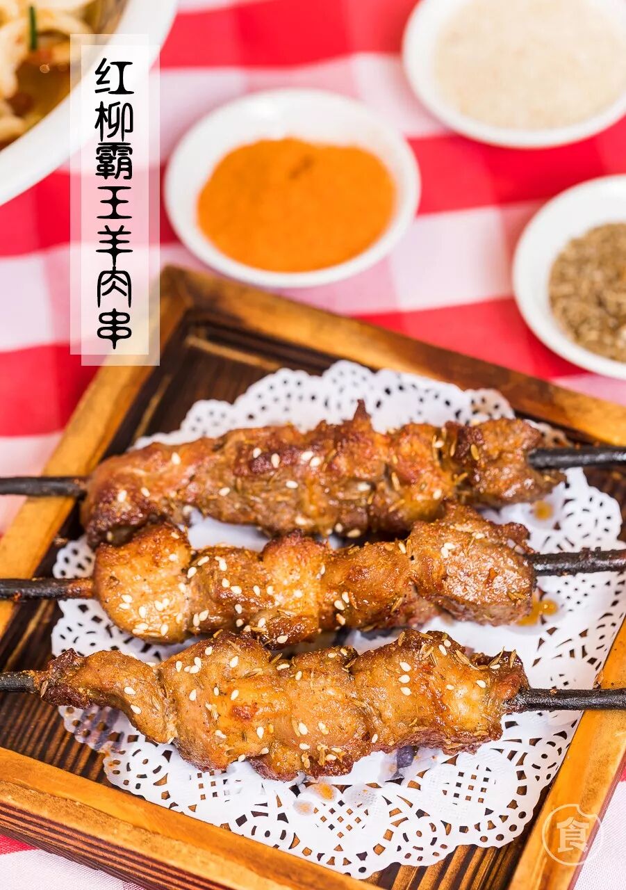 羊肉串用的是羊腿肉,肉质很有嚼劲。提前腌制过的羊肉用红柳枝串起,用木炭烤制。红柳枝在烧烤中分泌的香气能化解羊膻味,更是增添红柳特有的风味。
