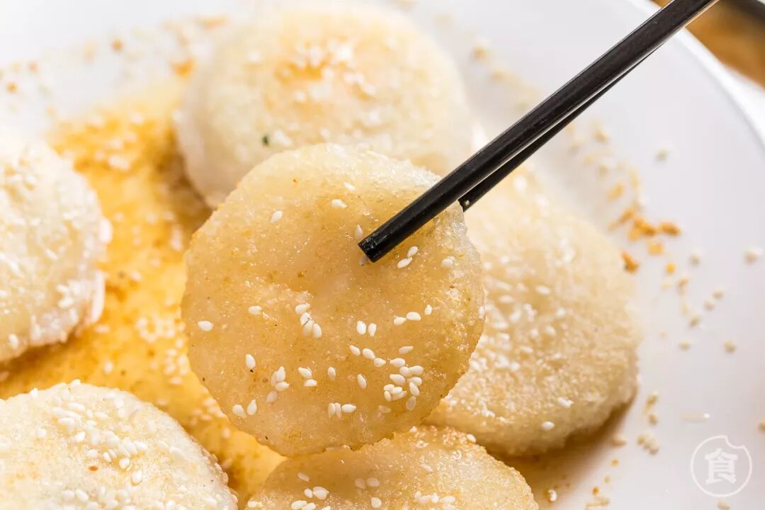 外皮煎至恰好的酥脆程度,紧锁糍粑内层的软糯