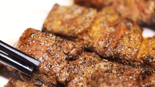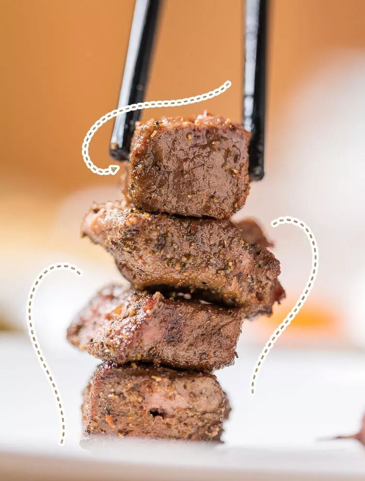 炭烤过后的牛肉粒仿佛会“哔汁”