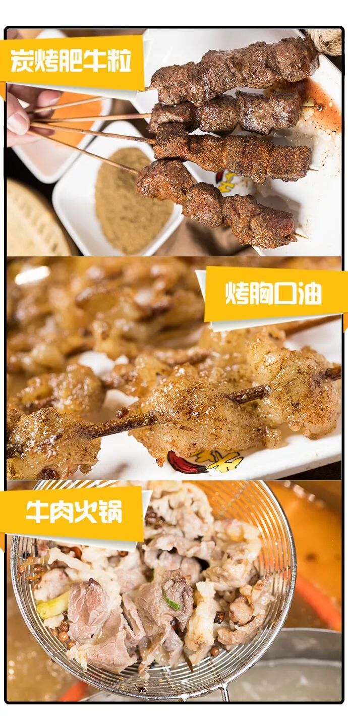 新鲜牛肉烧烤+新鲜牛肉火锅+全牛小炒的特色餐饮