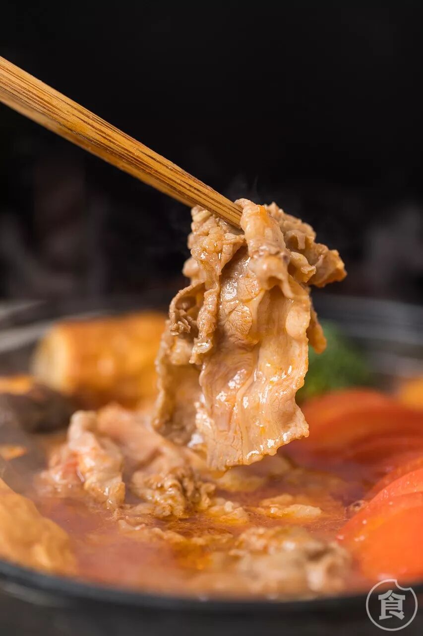 精选澳洲进口的谷饲肥牛,煮到微微变色,消去粉红后就能吃了。每一片都肥瘦均匀,滚入汤底里的滋润,满嘴留有牛油香。