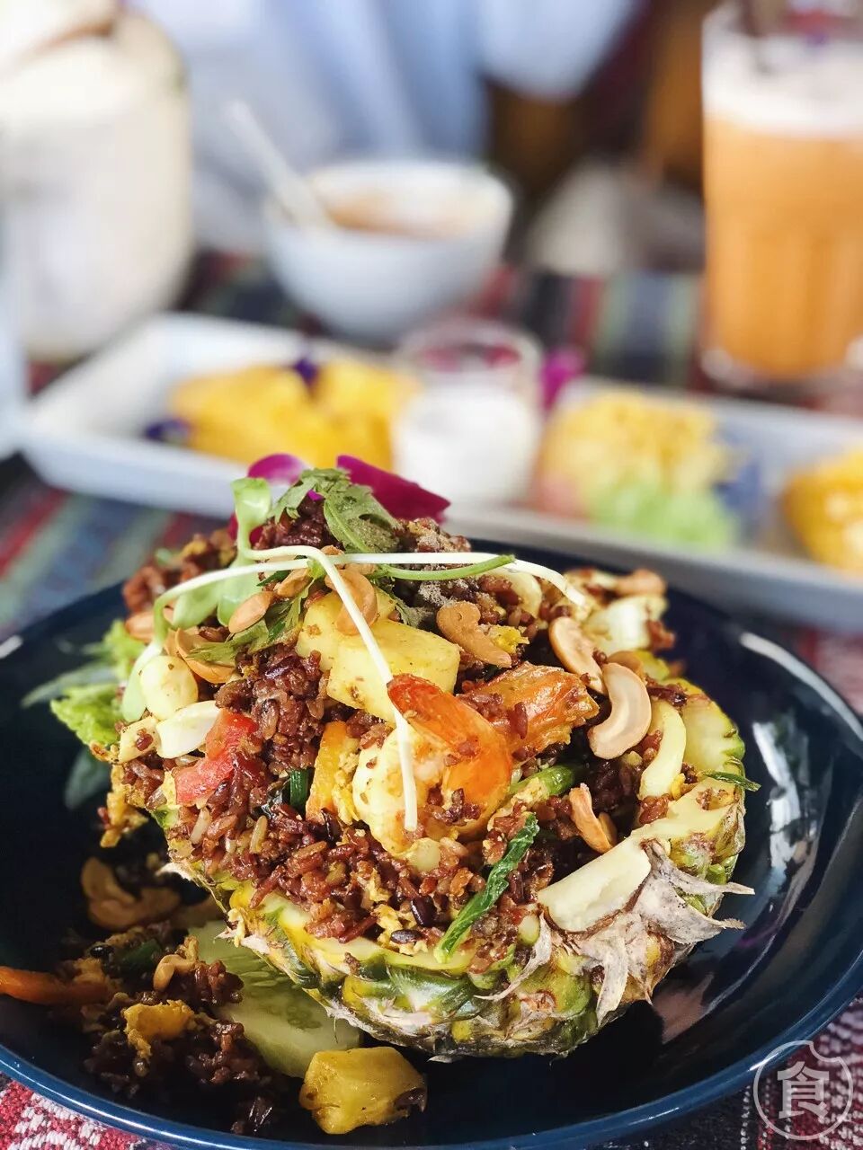 黄咖喱海鲜炒饭(75泰铢=15rmb)、菠萝红米炒饭(100泰铢=20rmb):这里的炒饭真的超级超级推荐,一开始点了黄咖喱海鲜炒饭,好吃到马上清盘了,于是追加了一份菠萝红米炒饭,真的好香,米饭粒粒分明,五星推荐!