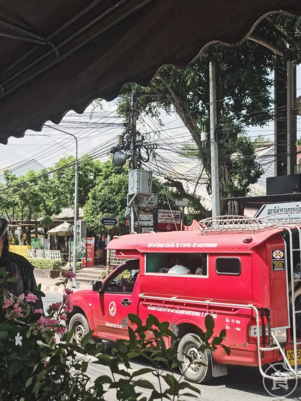 真的好喜欢坐清迈才有的双条车(因为车内拍照超好看),去很多地方都是30泰铢一个人,具体的还要看实际距离,但不会贵太多,在路边随便一拦,跟司机说好目的地就可以上车了。