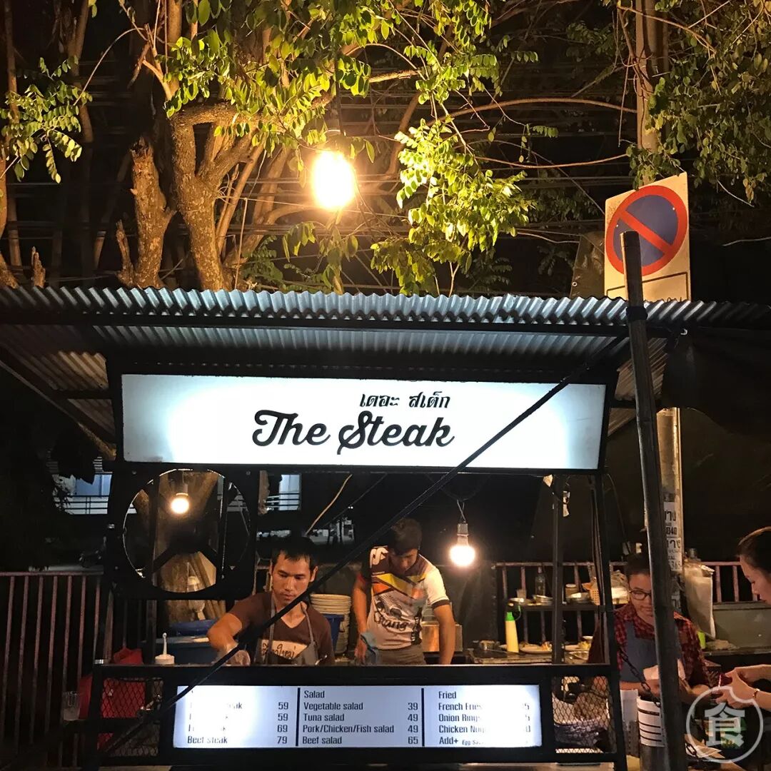 这家牛排店也是附近的人气王,从营业到结束都能一直满座。有牛肉、猪肉、鱼肉可以选择,在摊位前选择好后找位置坐下就可以了。