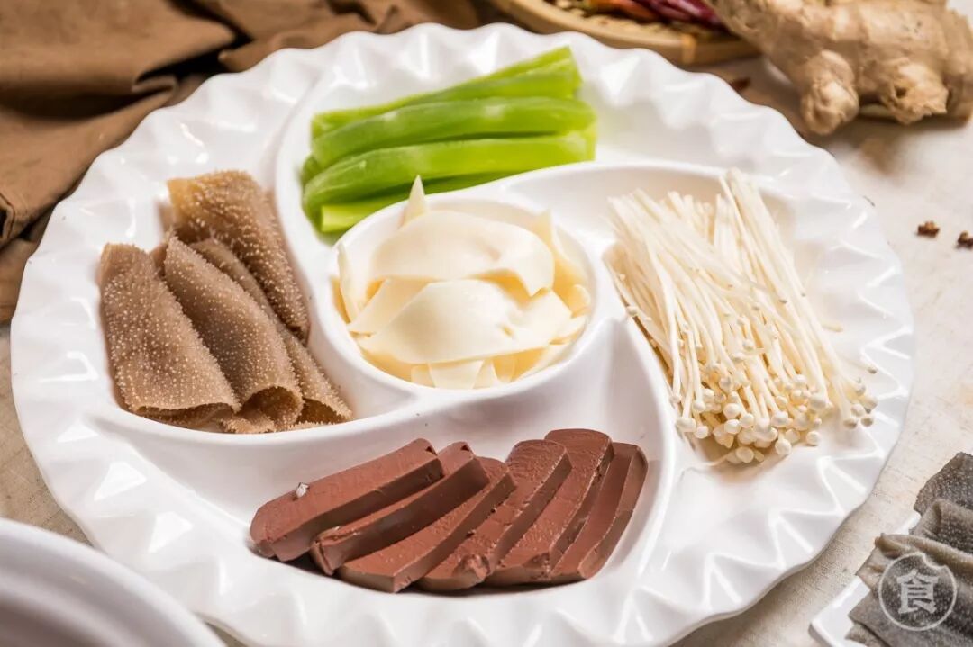有新鲜的毛肚,嫩滑的鸭血,爽脆的黄喉,还有怎么吃都吃不腻的金针菇和莴笋,都是吃火锅的必备食材。
