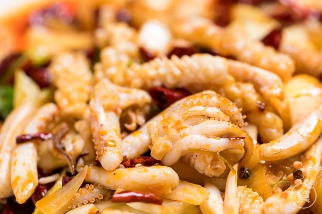 分量实在的火爆鱿鱼,在重庆的街头小巷都能见到,原本只是一道有名小吃,如今搬到餐桌上,可见其受欢迎程度一点也不亚于其他川菜。