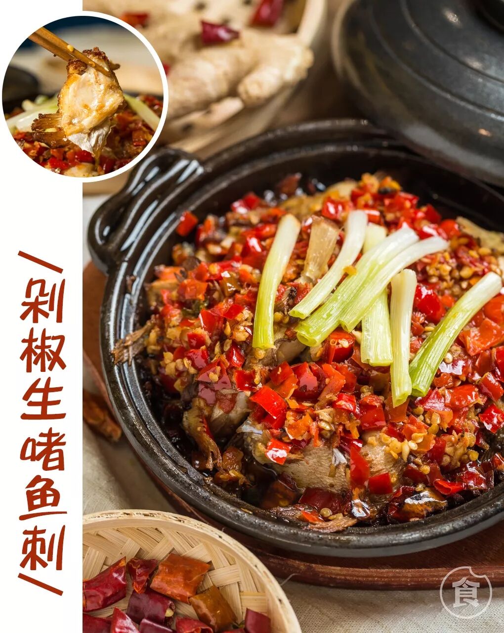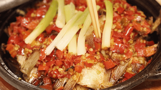 剥开上层剁椒,就能看到嫩嫩的鱼肉啦!不要被厚厚的辣椒吓到,剁椒的香辣渗进鱼肉中,辣味并不呛鼻,十分鲜爽。