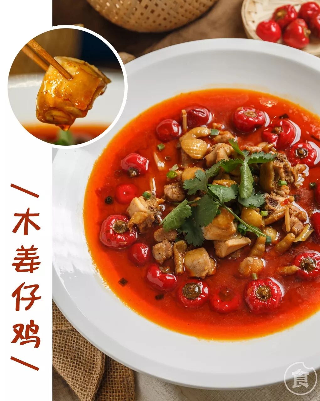 红彤彤的木姜仔鸡,带着精致的摆盘,似乎没有什么“攻击性”。鸡肉入口很嫩,辣味的后劲也很强,却也很让人上瘾。