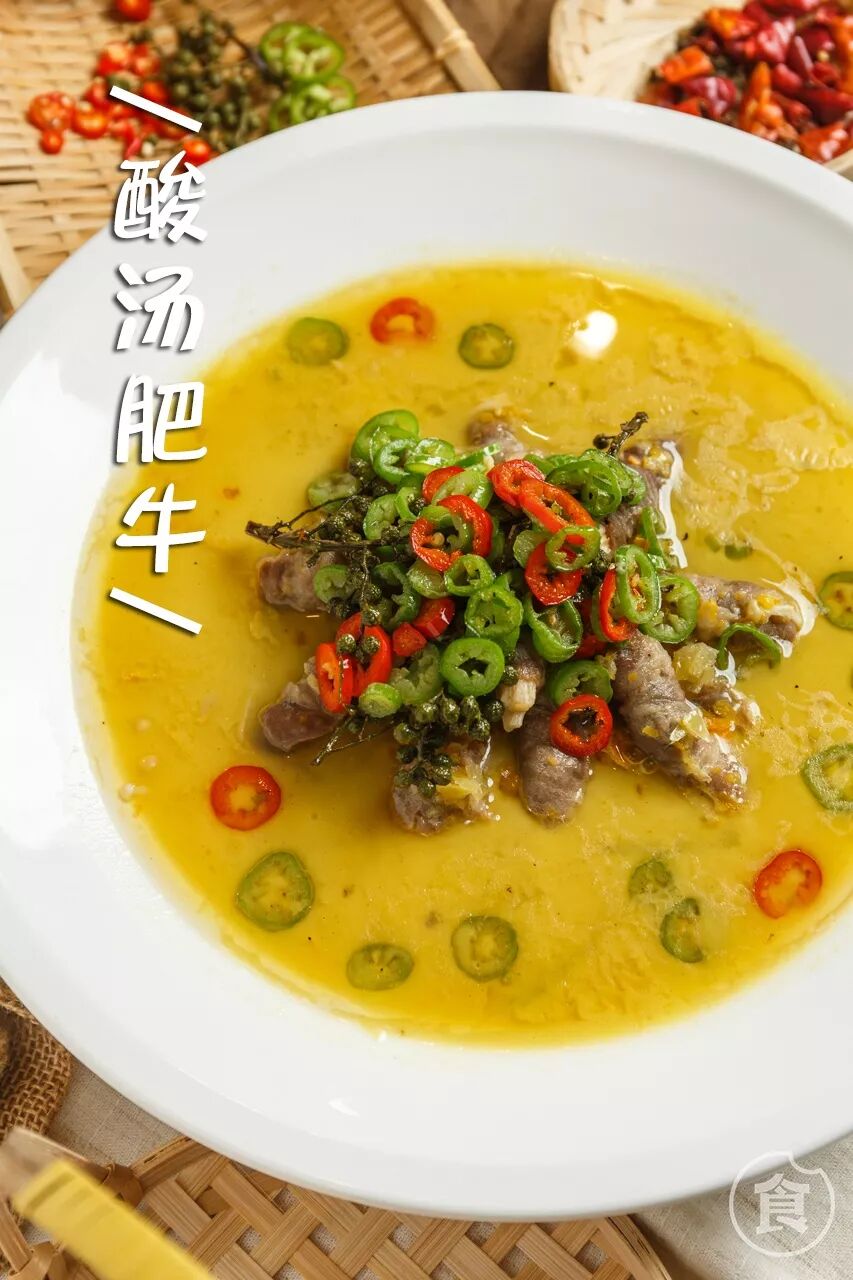 酸酸辣辣的不只有酸菜鱼,肥牛遇上酸汤也能疯狂刺激食欲。光是金黄的汤汁就惹人咽口水了。