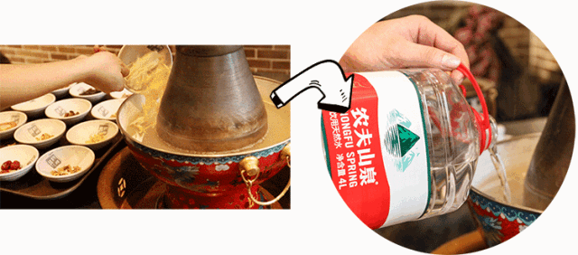 毕竟老北京涮肉讲究的是“清汤”,也就是所谓的清水,老北京人都好这一口,简单粗暴又不失食材的原味。店里用的锅底都是选用农夫山泉。