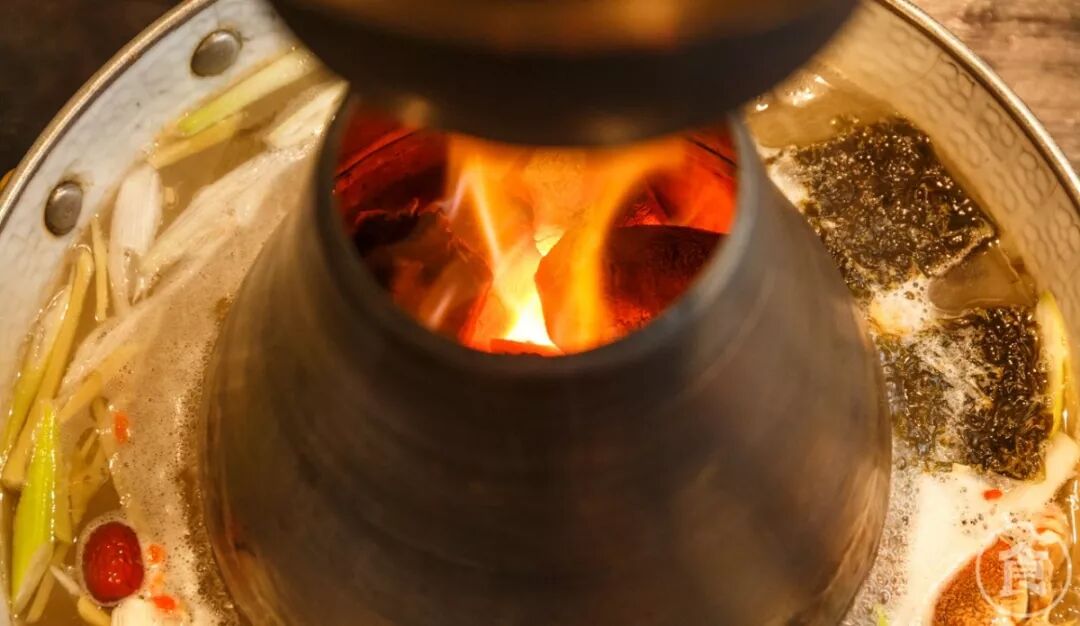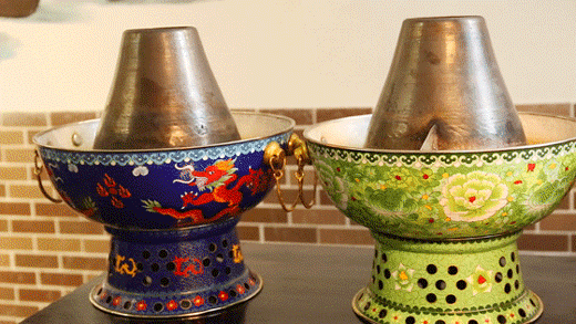 景泰蓝铜锅是专供古时皇帝御用,如今你也能在惠州吃到帝王家同款火锅!铜锅上桌前,都会在火炉中放入足够的炭,确保铜锅的温度。