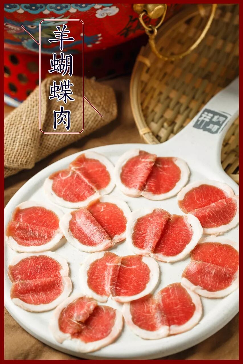 颜值超高的羊蝴蝶肉,每一片都跟蝴蝶一样,色泽鲜红,与其他羊肉部位相比,会更加厚实。