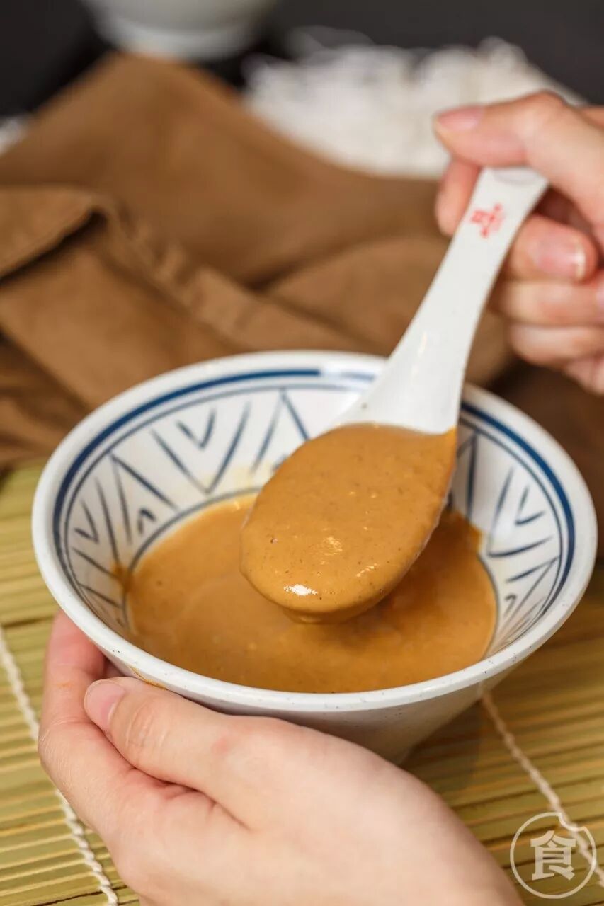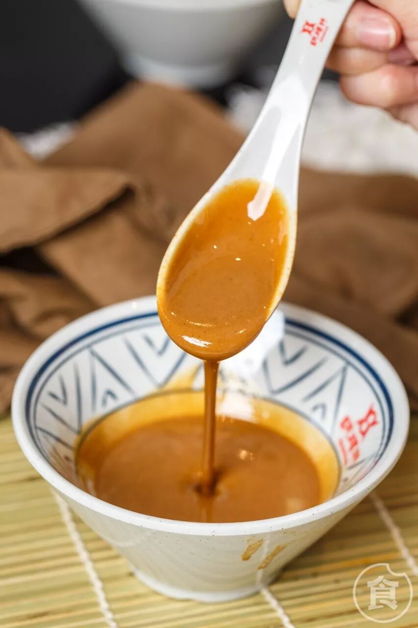 麻酱也分两种,一种是纯芝麻酱,一种是调和芝麻酱,懂吃的人都会这样吃:1勺秘制芝麻酱+1勺腐乳汁+1勺韭菜花酱+1勺蒜泥香油料+1勺纯芝麻酱。