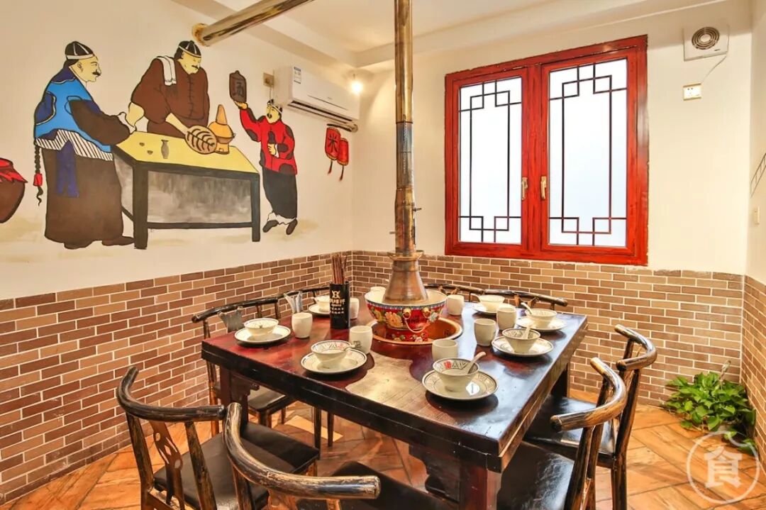 店不大,但是也备有包厢,需要预订最好提前致电。虽然他家的铜火锅是用炭火,但是抽风系统非常棒,在店里完全没闻到烟火味。