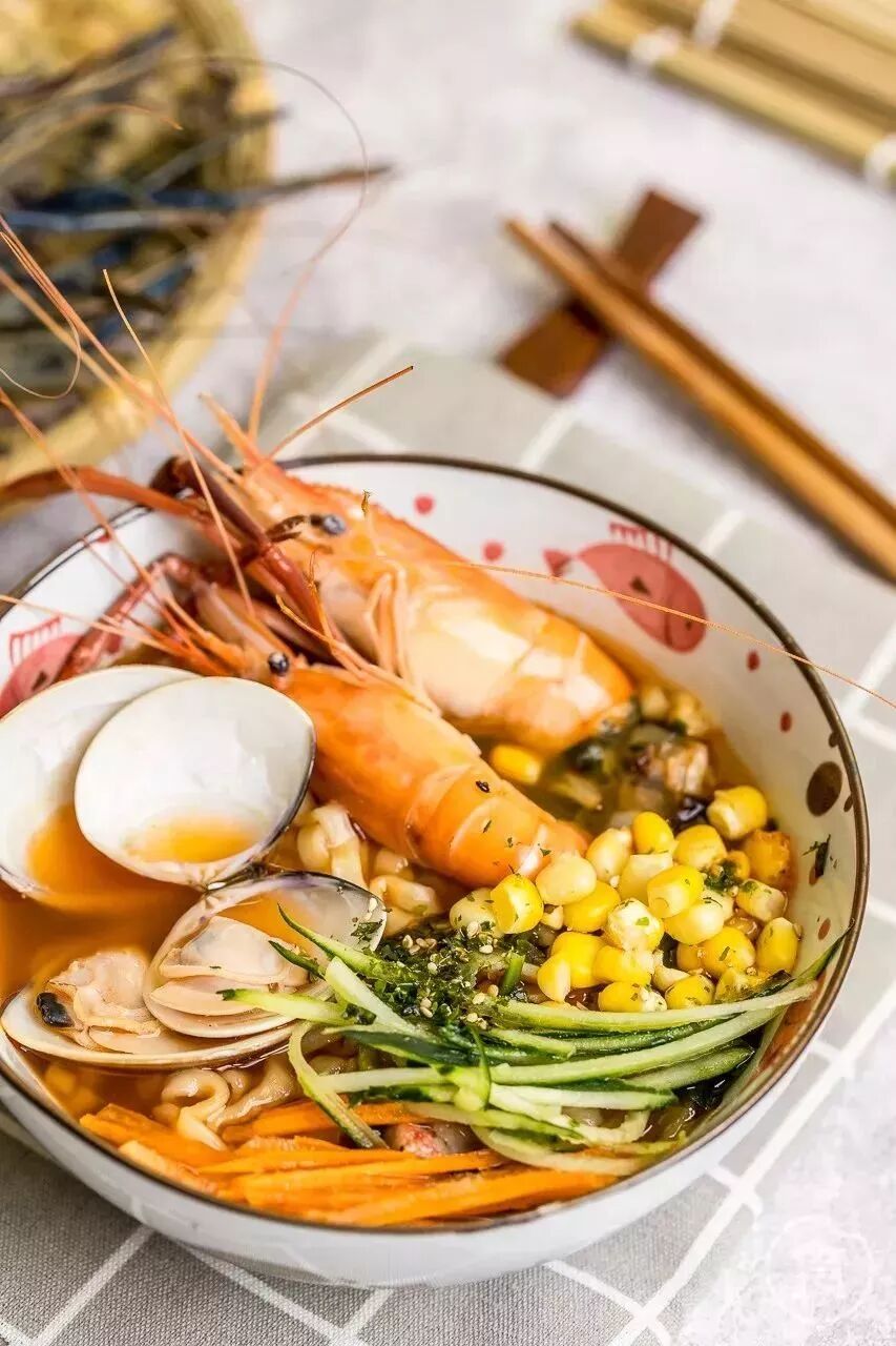 店内最受欢迎的是“真鲜海鲜泡面”。因为是海鲜汤面,所以选了几款海鲜做搭配~海鲜很新鲜!老板娘说这都是她当天去菜市场买的。大虾又大又弹牙,沙白也非常鲜甜~