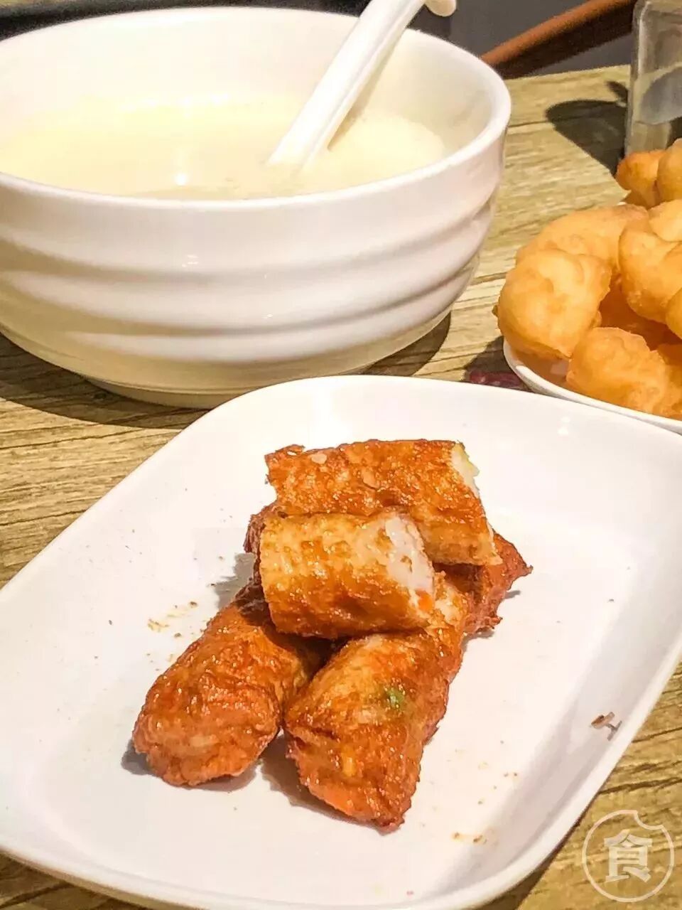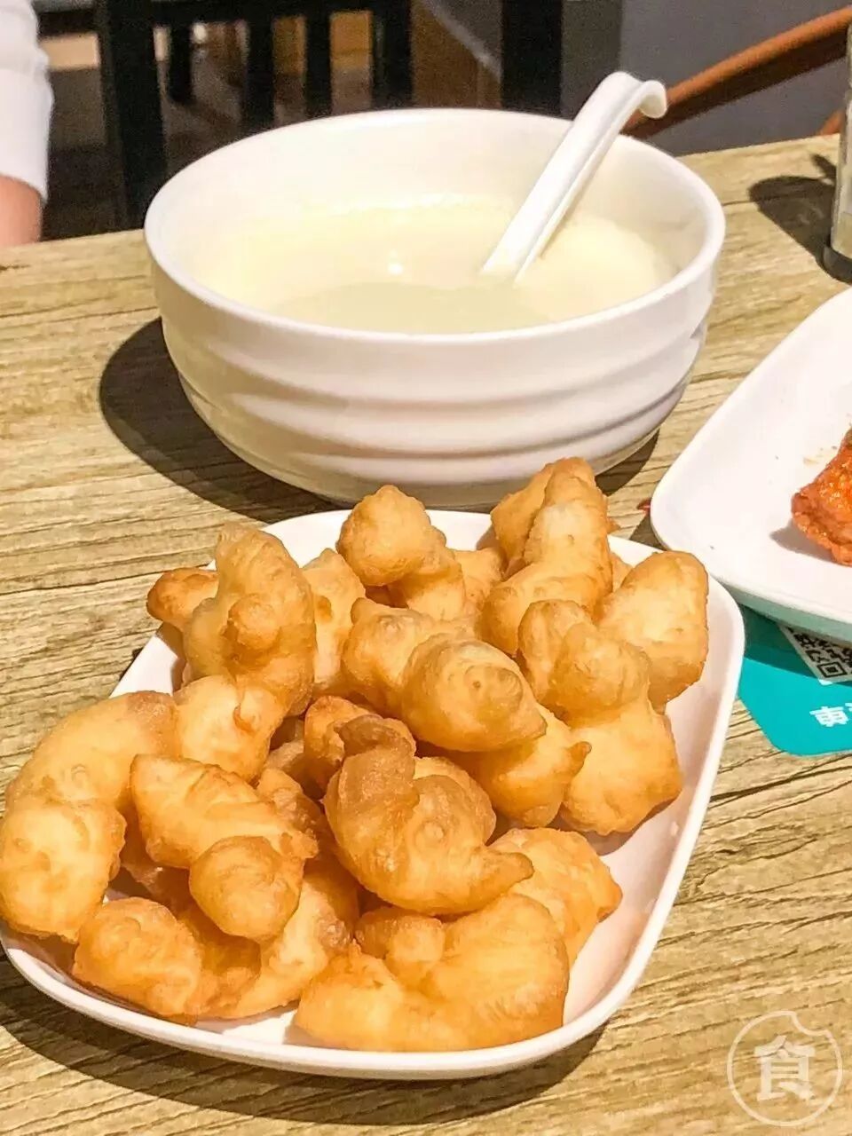 点了豆浆当然要点油条啦~油条点的是一人份的,量非常足。油条外皮很脆,里面却是绵软的。值得一提的是他们家的油条泡在豆浆里之后吃起来外皮还是脆脆的!