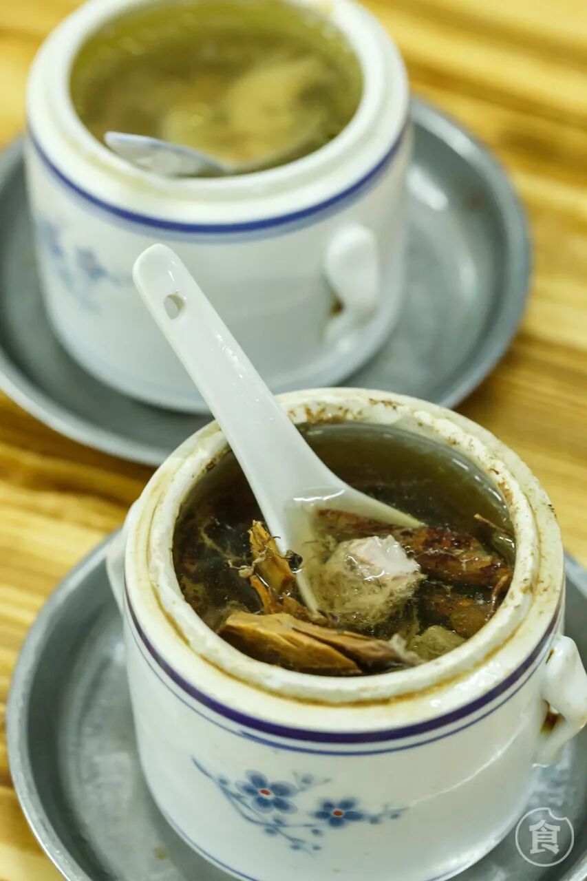 /五指毛桃炖猪骨/益气补虚,汤里带有淡淡的椰子香味,很是奇妙。/人参炖家鸡/温中补气,参味不重,但是十分清香。店里装修很简朴,价格也十分亲民,不论清晨还是夜晚,总有熟客到这里喝汤。