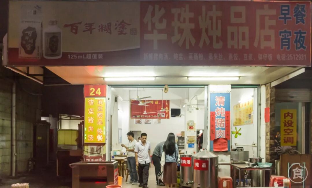 24小时营业的华珠炖品店,也有17年历史了。我们去到的时候是傍晚,老板正在准备新一轮的炖盅,各样食材都整齐地码在炖盅里,肉眼可见的真材实料。