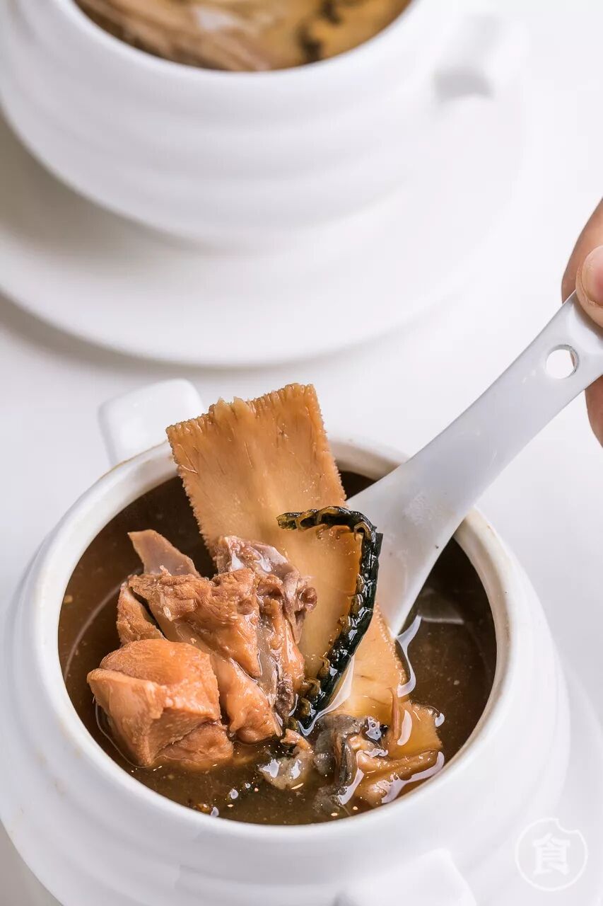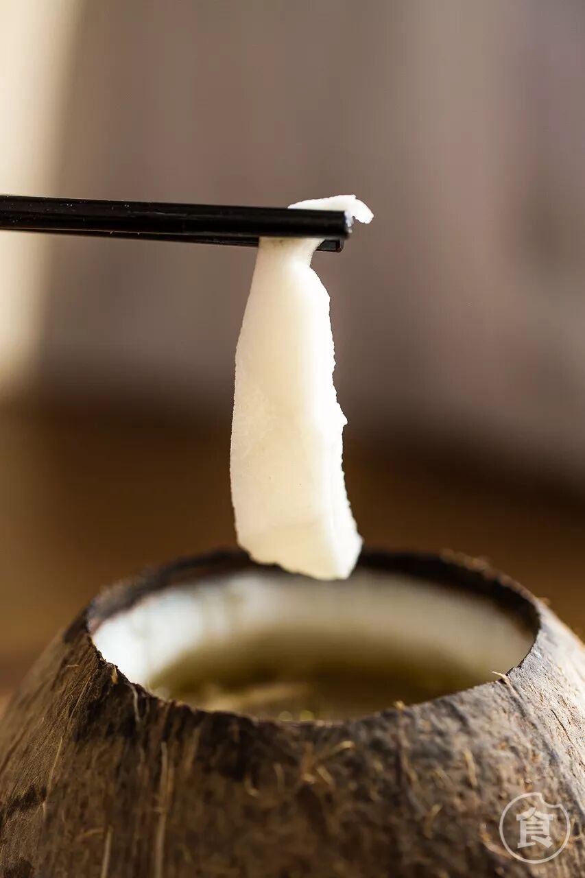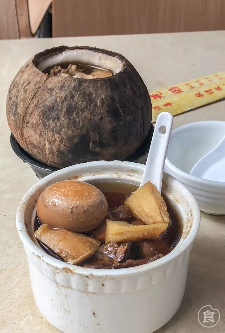 炖盅里的汤加了椰子水,汤水清澈,十分清甜。另外炖盅里还藏着爽脆的椰子肉,吃到也很惊喜。汤水