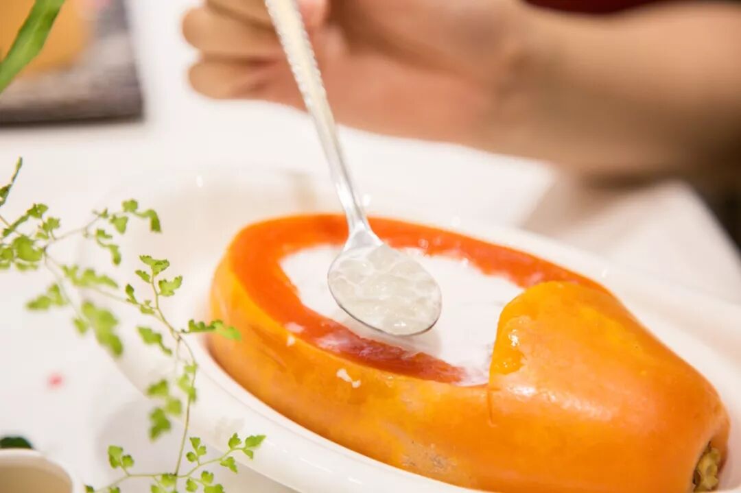 这一道/木瓜炖雪蛤/也是直击少女们的爱美之心,雪蛤炖得软糯,加上木瓜的果香,在干燥的秋天里着实诱人。