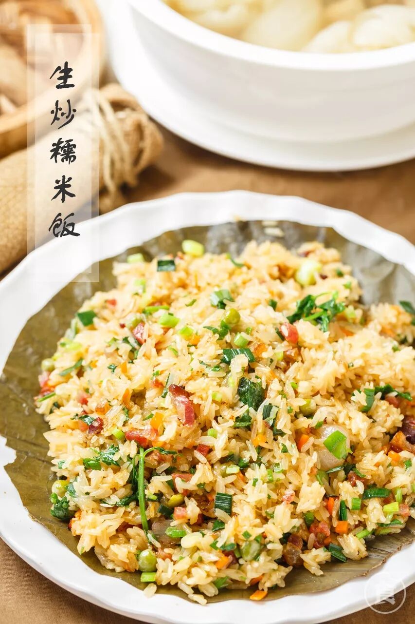 生糯米提前浸泡后,加入香菇腊肠等材料一起翻炒,香喷喷的很诱人。连不爱吃白米饭的小孩子,很容易就被这一道糯米饭哄好。