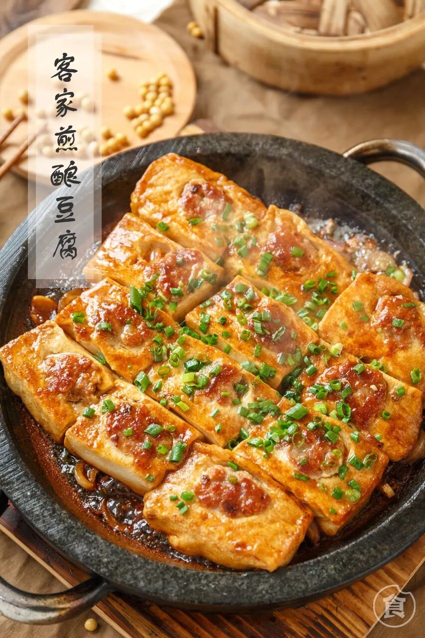 酿豆腐也是客家人餐桌上一道不可缺少的家常菜。磨豆汁,做豆腐,酿肉末,一道道复杂的工序都是厨师们亲手完成。如此亲力亲为的坚持,是21年来无数老客回头的原因。