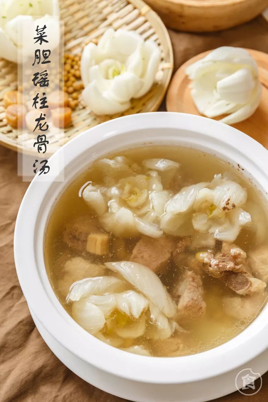 秋天干燥的天气,来一碗滋阴润燥的汤再合适不过了。白菜胆做成花朵般的创意形状,加上干贝和龙骨,炖成的这碗汤清甜可口,让人忍不住一碗接一碗。