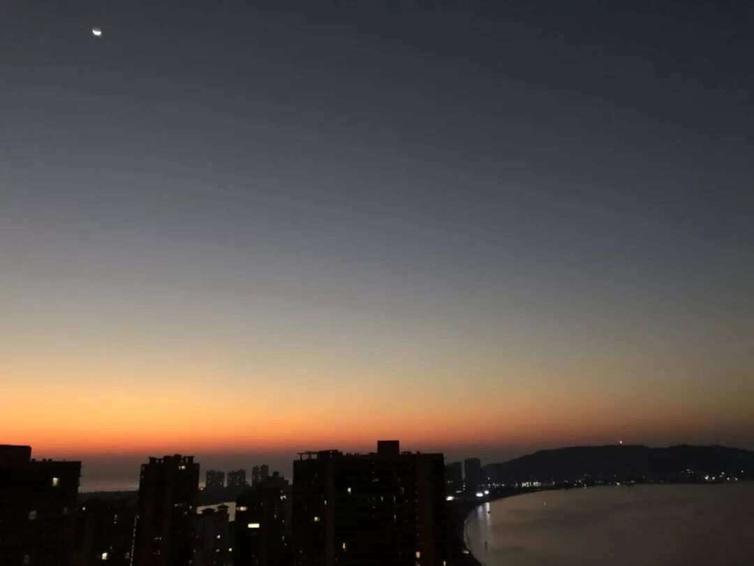 不多一会儿,月亮消失不见。咸蛋黄般的太阳从远处升起,从一点晕影到半日,直到完整的一颗亮相在众人面前。一天的忙碌,太阳作为了序幕。