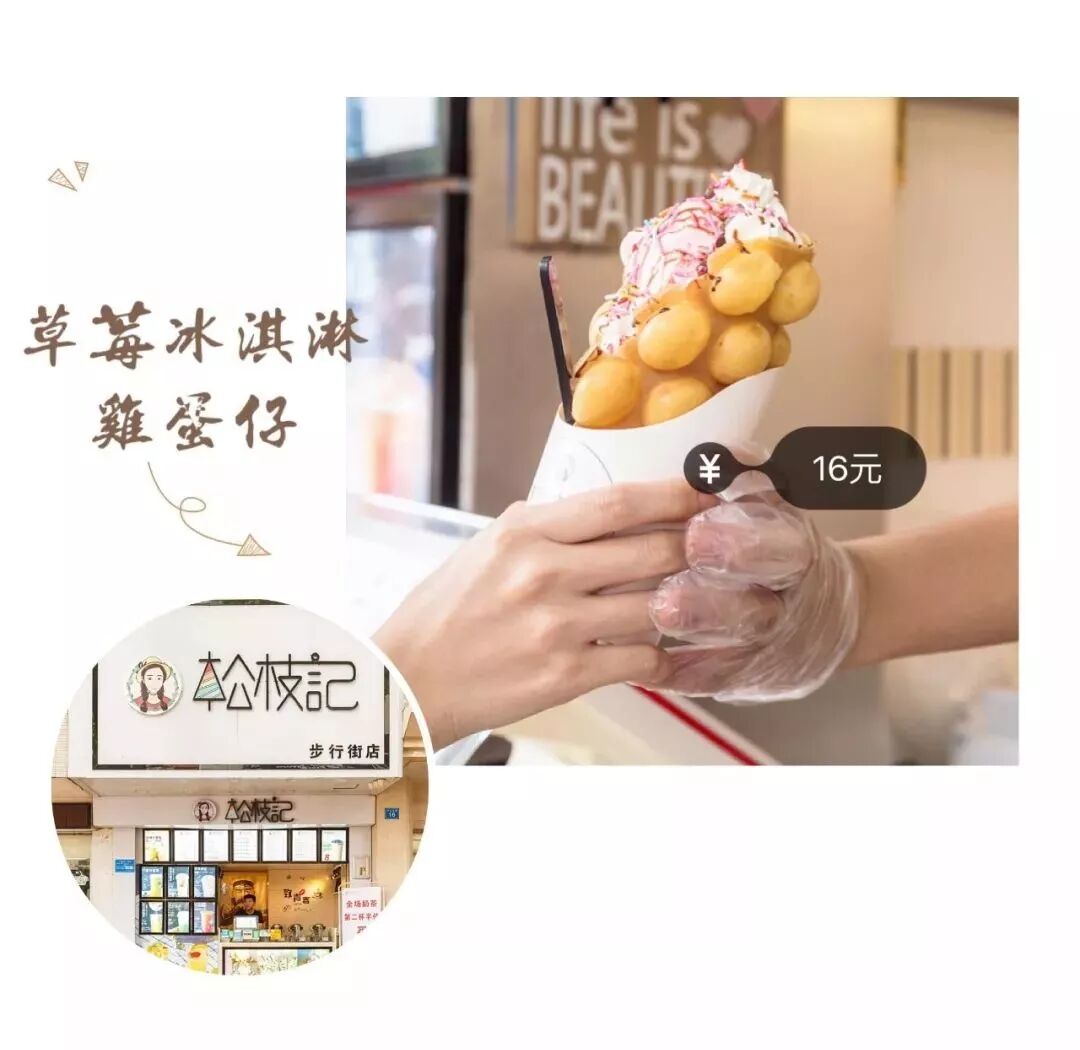一路直冲到松枝记,作为一个甜品爱好者,自然被这家的雪糕鸡蛋仔颜值所吸引,不打个卡不就很浪费此行~