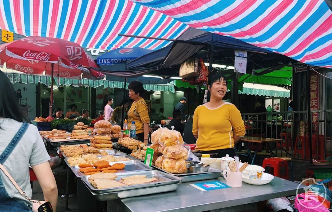大大小小的摊子,尽管老旧,却不会杂乱无章。每个小吃摊的老板在吆喝叫喊,招揽着路上形形色色的路人、食客。