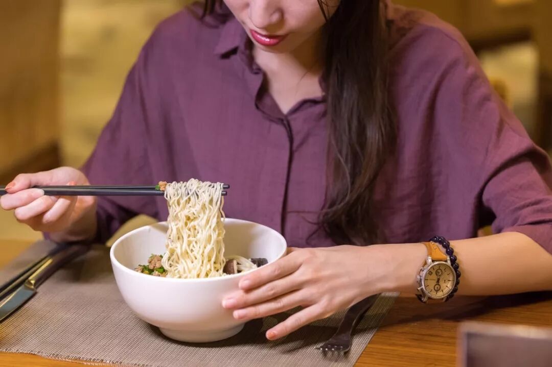 手工面的分量很足,有菇类和油豆腐做配菜,另外还可以自己加上卤肉和酸豆角等配料。