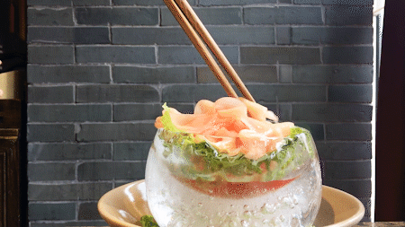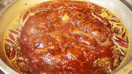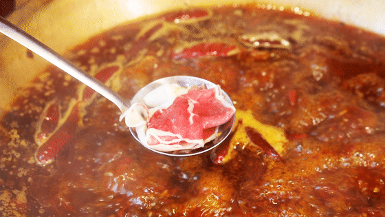 裹满辣椒油的鹅肠是川味火锅的必吃菜哦!
